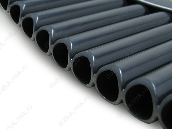 Левосторонняя модель(длинные трубки слева). Материал: пластик ABS. Флейта целиком отлита в пресс-форме, прочная и легкая. Настройка – двигающимися пробками. Основание съемное. В комплекте прочный чехол.