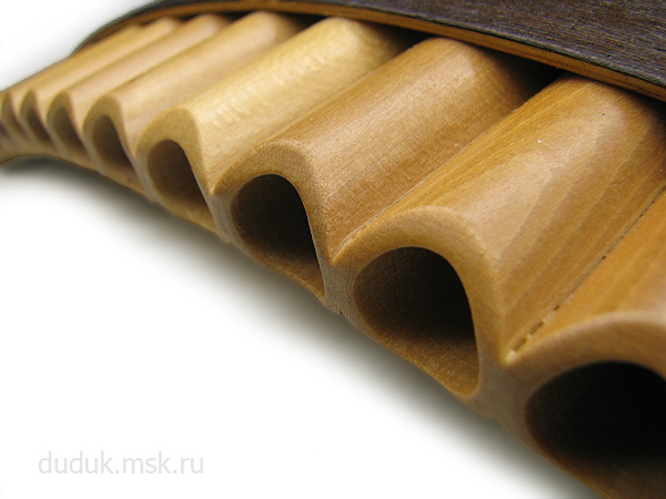Материал: пропитанная древесина горного клена. Диапазон - полторы октавы (C2-G3), строй диатонический.