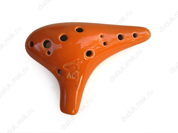 Керамическая окарина - альт. Имеет 12 игровых отверстий. Диапазон неполные две октавы. Классическая модель сочетающая в себе превосходный звук и легкость управления. Инструмент хрупкий и требует аккуратного обращения. В комплекте защитный чехол и короткое руководство с аппликатурой.