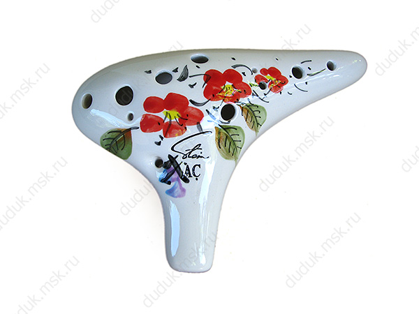 Керамическая окарина - альт. Имеет 12 игровых игровых отверстий. Диапазон A1-F3. Классическая модель сочетающая в себе превосходный звук и легкость управления. Инструмент хрупкий и требует аккуратного обращения. В комплекте защитный чехол и короткое руководство с аппликатурой.