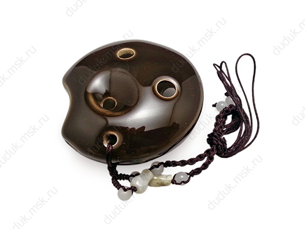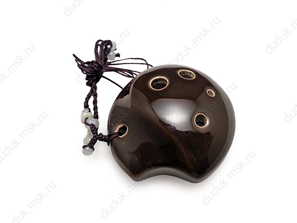 Керамическая окарина - сопрано, выполненная в виде подвески. Имеет 6 игровых отверстий и перекрестную "английскую" аппликатуру, позволяющую извлекать 10 нот в диапазоне от C(до) третьей октавы до E(ми) четвертой. В комплекте коробочка и короткое руководство с аппликатурой.