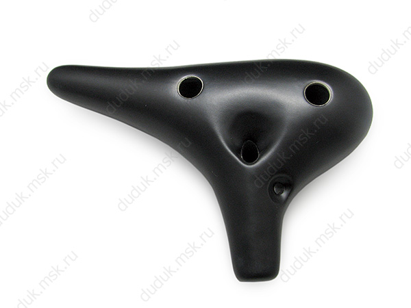 Керамическая окарина - альт. Имеет 12 игровых отверстий. Диапазон неполные две октавы. Классическая модель сочетающая в себе превосходный звук и легкость управления. Данная модель выполнена в черно-матовом оформлении. Инструмент хрупкий и требует аккуратного обращения. В комплекте защитный чехол и короткое руководство с аппликатурой.