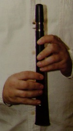 При игре на Зафуне все пять пальцев левой руки зажимают игровые отверстия в верхней части инструмента, в то время как четыре пальца правой руки располагаются внизу. (Большой палец правой руки не используется). Особенно постарайтесь обращать внимание на то, чтобы вы чувствовали пальцами края отверстий, что они плотно закрыты по всем краям. Зажимание игровых отверстий не должно требовать больших усилий пальцев.
